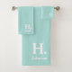 This products are designed in pastel light teal colour with the white big letter and family name or vice versa ( you decide). Set of towels are suitable for being in your luggage for personal use during travelling time.