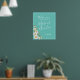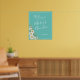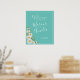Pretty wedding welcome sign poster features watercolor white daisies corner on light teal background with white customizable text blocks in modern fonts