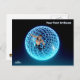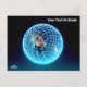 A 3D fractal science fiction image of a lone human male figure grasping the bars of the spherical glowing blue cage in which he is imprisoned. Stars shine in the dark sky. Add your own text.