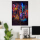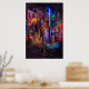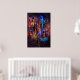 An abstract painting of buildings in vividly neon light and light trail of vehicles passing by. This poster will makes your room become more colourful.