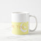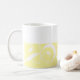 Customizable white mug with a light-yellow decorative band (Thank You is not customizable). You can easily add and change text (font, size, colour and position) by clicking the customize button. Other models are available.