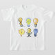 This cool cartoonish design is of six lightbulbs. Each of the lightbulbs has a different face and expression making for a really interesting and fun design. This lightbulb characters design looks great on this girls t-shirt. Perfect for yourself or as a gift