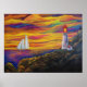 Lighthouse at Sunset Sailboat landscape Mountain Poster