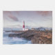 Lighthouse on the cliffs in England with the ocean waves crashing up against the shores as the sea mist sprays the little seaside village. This beautiful picturesque image is sure to make you smile.