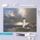 Lighthouse shining brightly in a storm. Tags: ocean, sea, coast, rocky, rocks, lighthouse, light, storm, beauty, beautiful, coastline, house, bright, "calm before the storm", clouds, dark, photo, photography, incredible, fantastic, art,