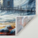 This dynamic expressionist tapestry captures the raw energy of a stormy seascape, with a lighthouse standing resilient amidst the turmoil. The scene is alive with swirling clouds and waves, depicted in bold, impasto brushstrokes that convey the movement of the wind and water. A spectrum of vibrant colours explodes from the lighthouse beacon, symbolizing hope and guidance through life's tumultuous journeys. A small, weathered seaside cottage huddles near the lighthouse, adding a touch of serenity to the chaotic beauty of the scene. Birds caught in the tempest swoop across the canvas, adding to the sense of motion. This piece is a testament to the enduring spirit of maritime life and would make a striking statement in any space that values the power and beauty of the sea.