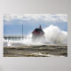 South Pier Lighthouse meets the waves the day after a storm rolled through the Port of Grand Haven, Michigan located on Lake Michigan.