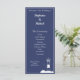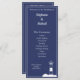 Elegant & simple navy blue wedding ceremony program with an illustration of a lighthouse for a marine and nautical theme wedding!