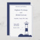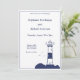 Elegant & simple wedding invitation with an illustration of a lighthouse in navy blue tones for a marine and nautical theme wedding!
