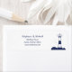 Elegant & simple return address label sticker with an illustration of a lighthouse in navy blue tones for a marine and nautical theme wedding! It could also be used for a family, a company or your small business!