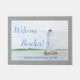 Sure to get the looks at your beach house or cottage for this gorgeous, watercolor lighthouse with funny pun "Welcome Beaches!". Template provided for a family name and established year at the bottom.