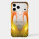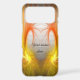 Bright yellow combined with orange on striped background - a modern, delicate, digital fractal work. Timeless and cool. A real eye catcher! Custom text.