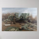 Lightning at Bourheim by Larry Selman Print. Operation Queen, Bourheim, Germany, November 26, 1944. Technical Sergeant Joseph A. Farinholt, known as “Lightning Joe” to his buddies, had already earned three Silver Stars in the five and a half months since his unit had landed on Omaha Beach on June 7, 1944. A Guardsman from Baltimore, Maryland, Farinholt was acting platoon leader for the anti-tank platoon of Headquarters and Headquarters Company, 3rd Battalion, 175th Infantry, 29th Infantry Division when he earned his fourth and final Silver Star in late November, 1944. No known enlisted man in the Army earned four Silver Stars during the entire war, much less over such a short span of time. On November 26, 1944 the 175th Infantry was spread thin around the outer perimeter of the town of Bourheim, which it had captured three days earlier. For the sixth time in those three days, a German armoured column attempted to recapture the town, a key to their defence of the strategic city of Julich on the Roer River. The enemy attack opened with such an intense artillery barrage that the 29th Division’s After Action Report cites as it as “…the worst suffered by the division during the war.” Then the German infantry and their supporting tanks pushed forward. Men in the outlying areas fell back toward the town and it looked as though the enemy might finally break through. Farinholt quickly went into action. One of his three 57 mm antitank gun crews, after firing several rounds at the enemy, all became casualties when a German shell hit a tree near their position. Knowing that the 57 mm gun did not have the penetrating power to pierce a Tiger’s armour, Farinholt loaded, aimed and fired at the tread of the lead Tiger tank, disabling it and halting the advance of the column. However, the tank returned fire with armour-piercing machine gun bullets, wounding Farinholt in more than 20 places and shattering the bones in his right leg below the knee . Despite his wounds he managed to drag himself to his jeep and drive to the battalion headquarters to alert them of the strength and direction of the German attack. Weakened by his injuries and unable to control both the clutch and the gas pedal, Farinholt crashed his jeep into the Headquarters building but refused first aid until he gave his report. Because of his actions and those of his platoon, the German advance was stalled for almost an hour and then diverted to another sector, buying time for the 29th Division to move troops and summon air support to successfully defeat the attack. The Germans never recaptured Bourheim. Farinholt’s wounds were so severe that he was returned home and spent nearly two years in the hospital. Though he lived nearly 60 more years, he never fully recovered from his injuries. He is depicted here as he fought the war, with several days’ growth of beard, toting his preferred weapon, the M-3 “Grease gun” on his back, and wearing the boots he “liberated” from a dead German soldier in Normandy because they were far more comfortable than the U.S. issue gear. Farinholt’s remarkable bravery was emblematic of the courage displayed by over 300,000 National Guardsmen who were called to active duty during peacetime in 1940 and 1941, more then doubling the size of the Army before America entered World War II. While some 75,000 Guard enlisted men went on to become officers during the war, those who – like Farinholt – remained in the enlisted ranks served an equally valuable role by providing the solid core of experienced non-commissioned officer leadership that every unit needs to be successful in combat. All Prints are presented & displayed at the largest size/resolution available. The system will prevent you from choosing a size larger than the image is capable. Range through the sizes available from smallest to largest and choose your size of choice.