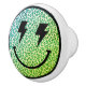 Fun green leopard animal print lightning bolt eyes smile face ceramic knob to add a fun decor touch.