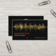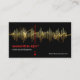 A black cover features a gold sound frequency wave design with an underlying electric pulse display. A vertical red marker highlights your prestigious name and job title. You have a slogan option to publicize your services at the lower right corner of the card.