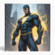 Lightning Man stands posed in a show of strength, with lightning radiating off his arms and torso. Positive action role model for boys, this is ad terrific back-to-school binder.