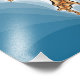 An abstract art design of lightning against a blue background.
