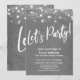 Over a solid background that can be changed to any colour you prefer, I've placed a subtle transparent rustic paper texture that adds depth and interest to the paper. In a modern, casual handwriting script font, I've created a graphic for the word "Let's Party!". In the same distinctive font, the word "Love" appears on the back. All other text is fully-editable; please feel free to use the template fields to add your details and click to customize further if you need to resize, reposition, or even change this font. The top of the design is accented with several different graphics depicting a variety of styles of twinkling bright lights, adding a fun, festive vibe for your special occasion. Please be sure to reach out if you have special requests or need help with customizing. // 105 //