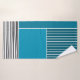 Cet ensemble de serviettes est muni d'un linge noir, d'une serviette turquoise et d'une serviette de bain au design géométrique d'un grand rectangle turquoise dans le coin supérieur gauche, de rayures turquoises plus foncées dans le coin supérieur droit, d'un rectangle turquoise plus léger sous les bandes et de lignes noires dans le fond. Si vous aimez le design mais préférez différentes couleurs, envoyez-moi un message.