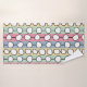 Ce kit de serviettes est doté d'un linge vert, d'une serviette bleue et d'une serviette de bain au design moderne du milieu du siècle de cercles blancs "déformés" reliés par des lignes noires sur un terrain de bandes vert pâle, rose pâle, bleu pâle et jaune pâle. Si vous aimez le design mais préférez différentes couleurs, envoyez-moi un message.