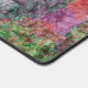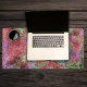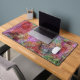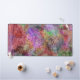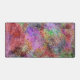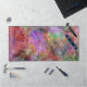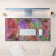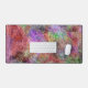Ce tapis de bureau a un design abstrait avec un aspect de peinture aquarelle de vert, rose, jaune et violet tourbillonné ensemble avec des lignes de griffes gris.