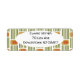 Ces étiquettes d'adresses de retour ont un design moderne du milieu du siècle fait de cinq lignes vertes et un rectangle arrondi doré avec un rectangle arrondi orange répété à travers le design.
