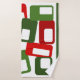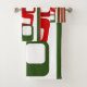Ce set de serviettes a un design moderne de Noël du milieu du siècle de lignes et rectangles dans les tons rétro de rouge et vert.