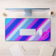 Monogramme Personnalisez avec votre initiale et votre nom personnalisés. Espace de travail cool unique pour bureau, salle, travail, atelier, salle de jeux.. Différentes lignes rayées bleues roses design élégant.