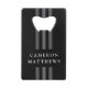 Élégant ouvre-bouteille noir avec trois lignes gris foncé qui vont du haut au bas avec votre nom à travers.