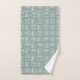 Cet ensemble de serviettes a un design moderne du milieu du siècle des ensembles de cinq lignes blanches, alternativement horizontales et verticales, répétant à travers le design sur un arrière - plan vert rétro. Si vous aimez le design mais que vous voulez des couleurs différentes, envoyez-moi un message.