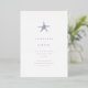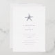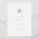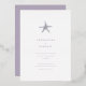 Ce design mariage est un mélange parfait d'élégance et de beachy. La principale caractéristique du design est un petit motif d'étoile de mer argenté doré qui se trouve gracieusement au centre de l'arrière - plan de couleur blanche. Le motif de l'étoile de mer est conçu de façon complexe et ajoute une touche de nature à l'invitation. La typographie utilisée est la lavande, qui ajoute une touche de sophistication et assure que le texte est facile à lire. Le style de police utilisé est propre et moderne, créant un look intemporel qui ne sortira jamais de la mode.