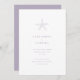 This wedding design is a perfect blend of elegance and beachy vibes. The main feature of the design is a small lavender starfish motif that sits gracefully in the centre of the white coloured background. The starfish motif is intricately designed and adds a touch of nature to the invitation. The typography used is a classic style font, which adds a touch of sophistication and ensures that the text is easy to read. The font style used is clean and modern, creating a timeless look that will never go out of fashion.