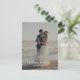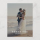 Modern wedding thank you card featuring classic white typography, a small starfish motif and a custom photo background.