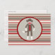 Like a Boss Sock Monkey with Tie on Red Stripes Postcard