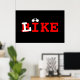 A graphic design of a white bike and the word bike in a red font to decor your house or office wall. You can customize (change) the background colour. For those who like bicycles