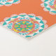 A soft, pastel floral mandala pattern in teal and coral. Artist: Harriet Sussman