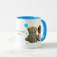 Rustic lil cowboy and teddy bear themed coffee mug with green and blue polka dots. Add baby's name in the personalize area.