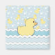 Little ducking swimming on lake with ric rac trim as water with ducks and bubbles print.
