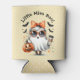 Cute ghost wearing an orange/white polka dot bow on her head and orange sunglasses. She's even wearing black high heels! She's carrying a jack o'lantern to the party. Bats are flying about and the stars are out Background is a pale orange/tan with white polka dots. At the top it says "Little Miss Boo!" These coolers are perfect for Halloween parties and Fall get togethers! You might even think about giving your guests these coolers to take home after the party. Be sure to check out the entire collection as there are more designs that coordinate with this one.