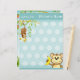 This Baby Boy Baby Shower Advice for a new mom features adorable and whimsical monkeys welcoming your new little one to the world! The front design features a monkey with a banana hanging by his tail from a tree branch with vines and another little monkey holding up a banana. The background is a large aqua blue polka dot pattern. The reverse side features two monkeys, hanging from a vine covered branch. Your baby shower guests will have plenty of room to write their advice as both sides have writing room. There's a huge assortment of items available to create your own shower decor, baby thank you notes, stickers and more!