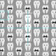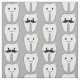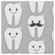 Whimsical dental design on grey.
