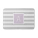 Custom monogrammed bath mat with a preppy stripe pattern in light grey, pastel purple and white colours. Personalize it with your monogram initial in a square frame. Use the design tools to choose any background colours, edit the text fonts and colours and add your own photos to create a one of a kind design to match any bathroom decor.