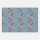 Lilac and Purple Flower Design on Blue Wrapping Paper Sheet