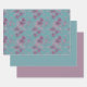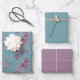 Chinoiserie lilac and purple flowers against a blue background, plain blue matching gift wrap and plain lilac gift wrap completes this set of three different gift wraps. Can be used for decoupage or as gift wrap.