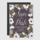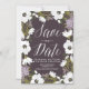 Personnalisable enregistrer l'annonce de la date avec des fleurs blanches, lilas et lavande et script de calligraphie moderne. Il s'agit d'une partie d'une suite mariage "ANEMONE BLOOMS" - articles correspondants sont disponibles.