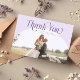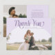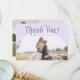 Elegant and minimal wedding thank you photo card featuring a large lilac arch frame with a swirly serif font that says "thank you" at the top. You can add a second picture on the back with a message.