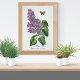 A botanical print from 1896, Syringa Vulgaris by Desire Georges Jean Marie Bois (1856-1946), of a lavender lilac. A yellow butterfly was added to the illustration. A beautiful floral for any wall in your home.