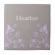 Sweet and dainty Butterfly Floral Tile with a muted dusty grey background and light purple butterflies and floral vine embellishments. This elegant floral tile would complement any decor! Easy to customize, simply add the personalized text of your choosing in the text fields provided. Click on the "Customize It" button to find additional personalization options.