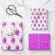 Wrapping paper with cute lilac cat patterned on pink and lilac background