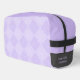 Ce sac de toilettes géométriques à deux tons dispose d'un motif en diamant violet et lilas. Un design moderne mignon et girly adapté à vos besoins domestiques ou de voyage. Pour modifier le nom, cliquez sur le bouton Personnaliser.
